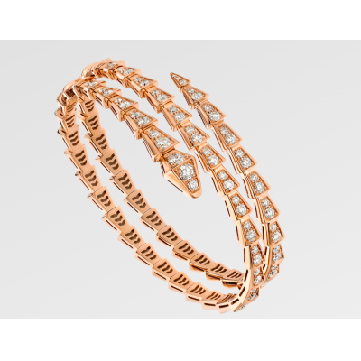 Serpenti Viper系列双圈手镯,18K玫瑰金材质,饰以全密镶钻石