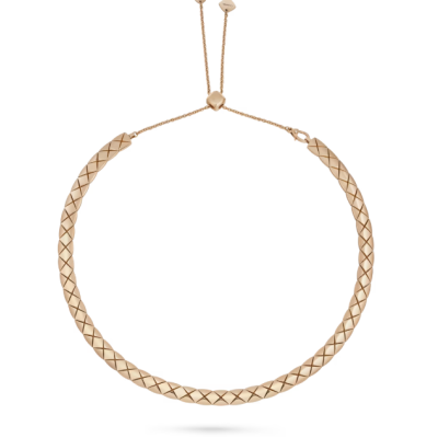COCO CRUSH柔性短项链,以米色18K金打造。这款项链配有滑动搭扣,可贴合颈间线条,堪称技术创举。image.png